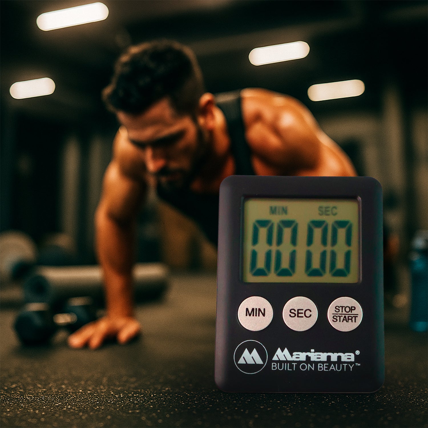 Fast one-touch setup: dedicated MIN and SEC keys plus START/STOP for instant operation.